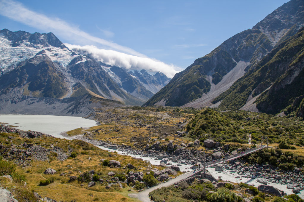 Das Wetter ist fantastisch und wir begeben uns auf den Hooker Valley Track. Der Wanderweg gleicht einer Autobahn, ist aber trotzdem wunderschön. Vom Anblick des Mueller Glaciers, über die Hängebrücken bis zu den fantastischen Aussichten auf den Mount Cook.