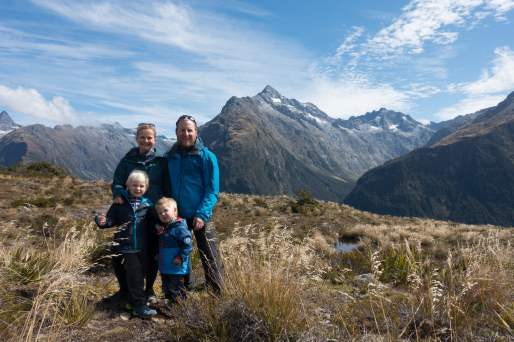Lange haben wir überlegt, ob wir dem Milford Sound einen Besuch abstatten. In jedem Reiseführer wird er als eines der Highlights in Neuseeland aufgeführt. Aber selbst von Te Anau ist es noch eine der wohl längsten Sackgassen der Welt – 120 km. Die Wetteraussichten sind gut, keine Selbstverständlichkeit bei über 200 Regentagen im Jahr. Wir lassen den unzähligen Reisebussen den Vortritt und fahren die ersten 80 km durch weite Täler und dichte Wälder bis zum «The Divide» Parkplatz. Hier startet der Routeburn Track, eine Mehrtageswanderung, die zu den Great Walks in Neuseeland zählt. Ganz so ambitioniert sind wir nicht. Der Key Summit Track, der zum Grossteil der ersten Etappe folgt, wird als schönste Tageswanderung an der Milford Road beschrieben. Ich habe auch in Erinnerung, dass der Weg als «Easy» eingestuft war. Nun ja, es geht 3,5 km nur bergauf, teilweise wirklich steil. Paul nimmt natürlich wieder den Taxiservice in Anspruch und so sind wir ziemlich fertig, als der Wald endlich den Blick auf die Berge des Fjordlands frei gibt. Und was für eine Aussicht uns hier oben erwartet – das war die Strapazen wert.