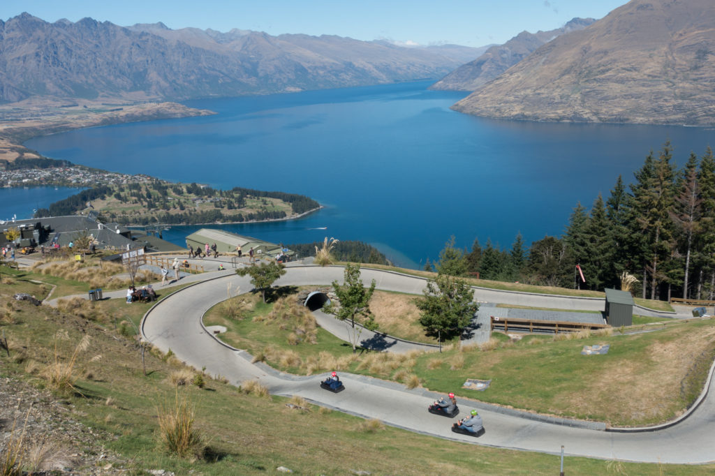 Bei unserer Ankunft sind die Berge, die am See steil empor ragen noch wolkenverhangen, aber als es aufklart gibt es kein Halten mehr – da ist ein Bähnli! Leider haben noch zwei, drei andere Leute die gleiche Idee und so müssen wir eine Weile anstehen, bis uns die Skyline Gondola innerhalb von ein paar Minuten auf den Bob’s Peak befördert. Von hier oben hat man eine fantastische Aussicht auf die Stadt, den See und die umliegenden Berge. Ein bisschen Action gönnen wir uns aber doch noch und fahren zwei Runden mit dem Luge.