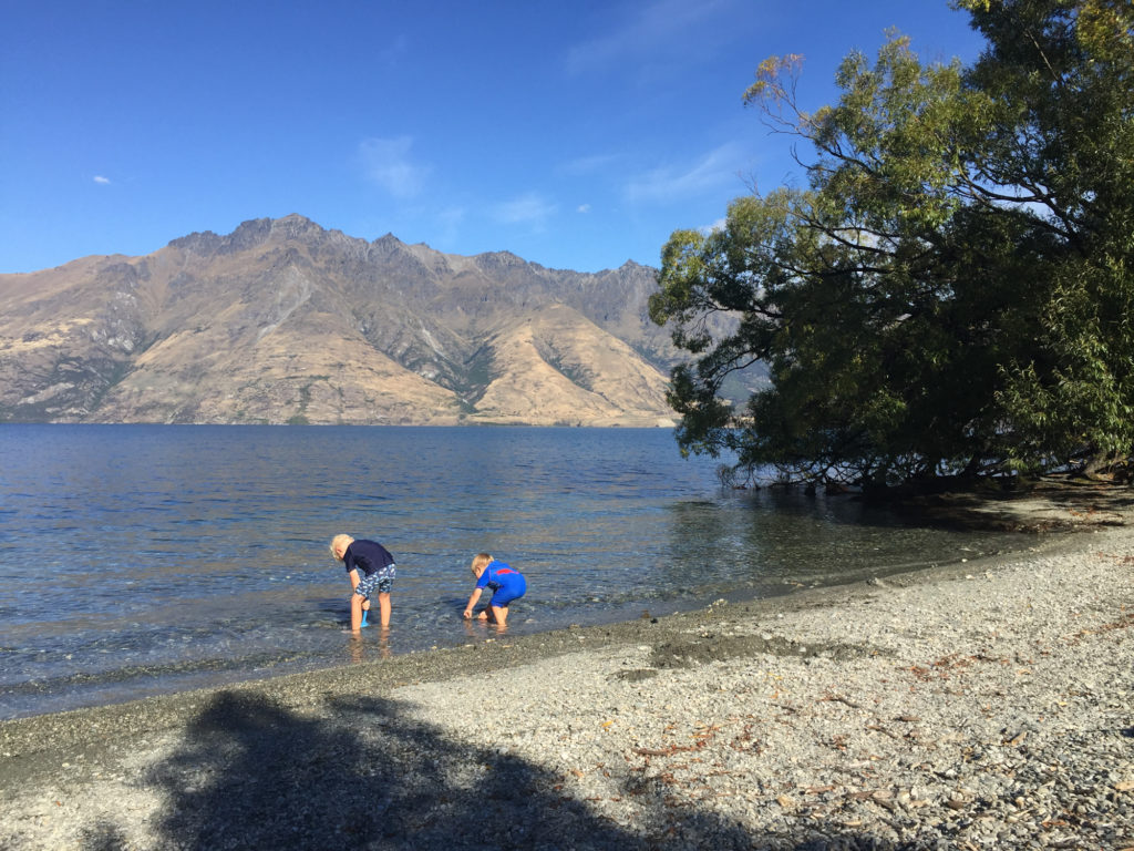 Mit zwei kleinen Kindern entscheiden wir uns lieber für den gemütlicheren Teil Queenstowns und verbringen einen Nachmittag im überschaubaren Stadtzentrum. Während bei Fergburger (dem Burger Laden Neuseelands) die Schlange die halbe Strasse hoch reicht, freuen sich die Jungs über eine gescheite Bratwurst. Schon damit wäre der Tag gerettet. Aber die Stadt am Ufer des Lake Wakatipu kann noch mehr. Am Seeufer hat es einen super Spielplatz und direkt daneben kann man bei Patagonia leckeres Eis schlemmen.