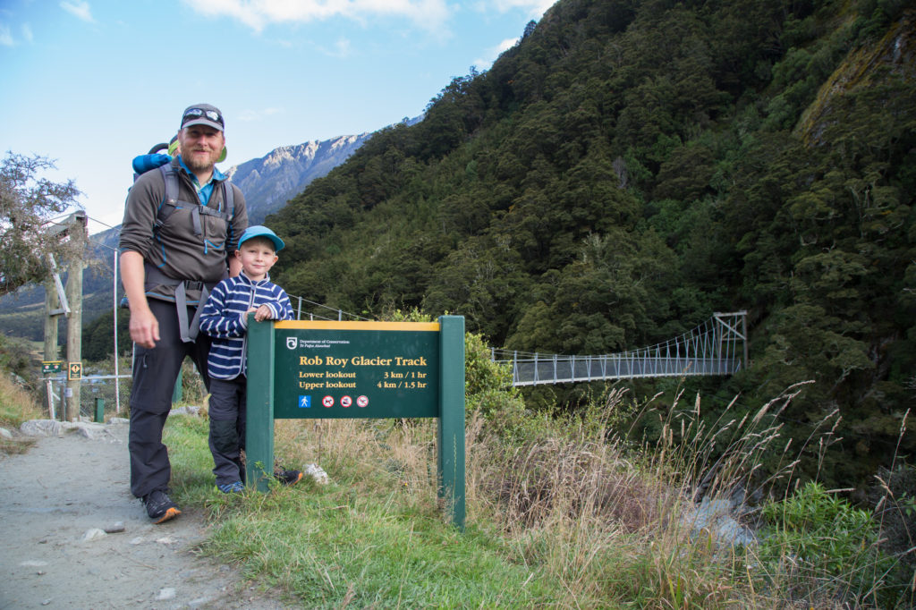 Wir geniessen es, ein paar Tage am gleichen Ort zu verbringen und vertreiben uns die Zeit mit Baden, Spielen und Wäsche waschen. Nach zwei Tagen Faulenzen wollen wir es dann aber doch noch einmal wissen und brechen zu einer Wanderung im Mount Aspiring Nationalpark auf. Den Rob Roy Glacier Track erreicht man nur über eine 30 km lange Schotterpiste. Das wollen wir unserem treuen Wohnmobil nicht antun und mieten uns ein Allradauto.