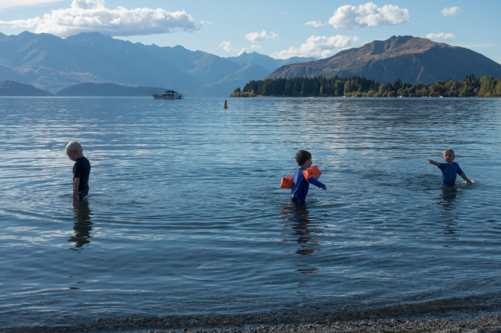 Lang verweilen können wir allerdings nicht, denn wir müssen den ganzen Weg auch wieder zurücklaufen. Wir treffen eine Familie vom Campingplatz und so können wir Paul motivieren, einen Teil des Weges selbst zu gehen. Über Henry sind wir einmal mehr erstaunt – 10 km über Stock und Stein, ohne sich ein einziges Mal zu beklagen. Ein echt toller Tag, den wir mit einem Bad im Lake Wanaka ausklingen lassen.
