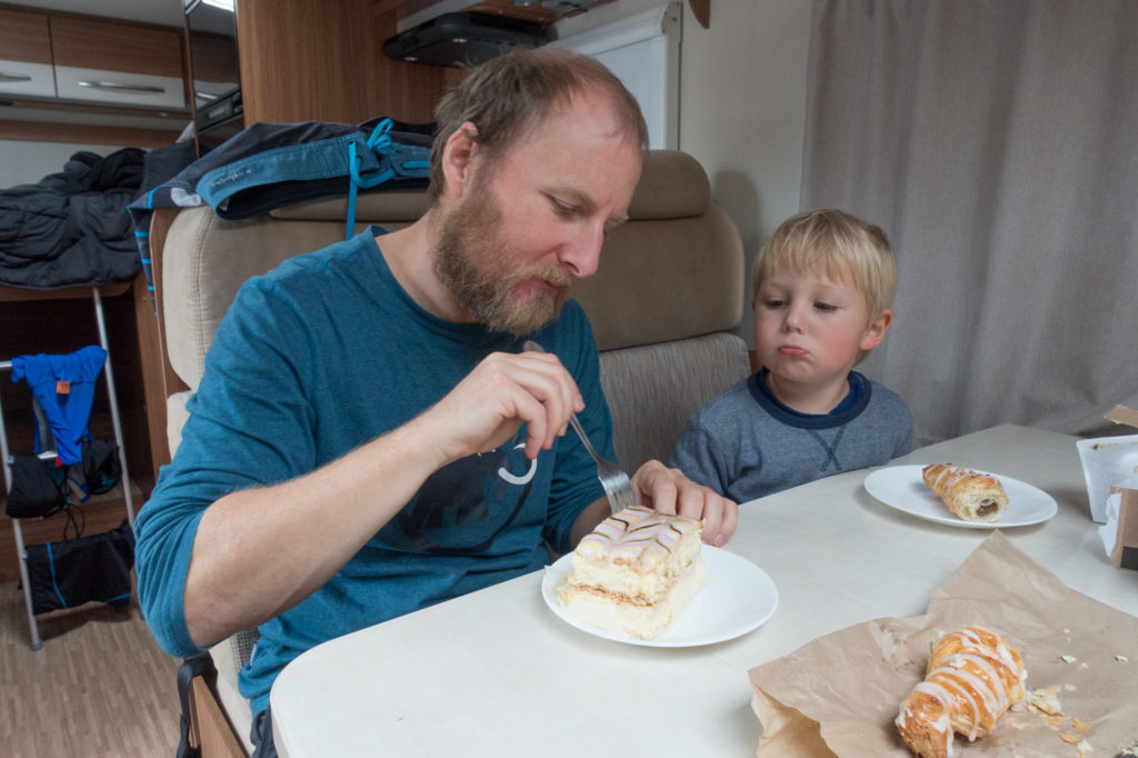 In Rotorua wollen wir nur kurz Mittagspause machen. Erster Stopp, eine Schweizer Bäckerei. Wir sind im Himmel und geben 35 Dollar! für Brot, Nussgipfel und eine Cremeschnitte aus.