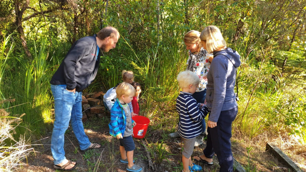 Bei allem Abschiedsschmerz freuen wir uns aber auch auf die letzten vier Tage in Neuseeland bei unseren Freunden Bene und Matt in Whangaparaoa, einer Halbinsel ca. 25 km nördlich von Auckland. Sie sind vor über vier Jahren von England ausgewandert. Wir haben zunächst etwas Mühe, die Zufahrt zu ihrem versteckten Haus zu finden. Die Wiedersehensfreude ist gross, die Jungs entdecken die Lego Kiste und so verbringen wir einen entspannten Nachmittag und Abend. Die Kinder springen jeden Tag in den Whirlpool, was für ein Spass. Am nächsten Morgen um sechs steht einer am Bett und möchte Ostereier suchen. Das wäre fast zum Desaster geworden. Mitten im Reisemodus hatten wir fast vergessen, das Ostern ist. Am Ostersamstag Schokolade kaufen zu wollen, ist keine so gute Idee. Es hatte absolut nichts mehr und ich sehe mich schon zwei enttäuschten Gesichtern gegenüber. Zum Glück hatte Bene vorgesorgt. Und so folgen vier aufgeregte kleine Geister den Hinweisen des Osterhasen, die er überall im Garten versteckt hat.