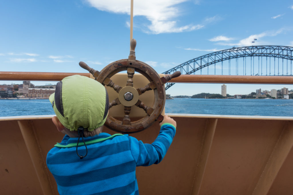 Hier befindet sich auch Mrs Macquarie’s Chair, ein Aussichtspunkt, von welchem man sowohl das Opernhaus als auch die Harbour Bridge sieht. Leider kommt man momentan wegen Bauarbeiten nur recht schwer hin. Der Himmel wird ohnehin immer dunkler und so besteigen wir am Circular Quay die Fähre Richtung Darling Harbour. Unser Ziel ist das Maritime Museum, Henry möchte gern Schiffe sehen. Die grösste Attraktion wartet schon in der Eingangshalle, ein Eisbrecher aus über 100.000 Legosteinen.