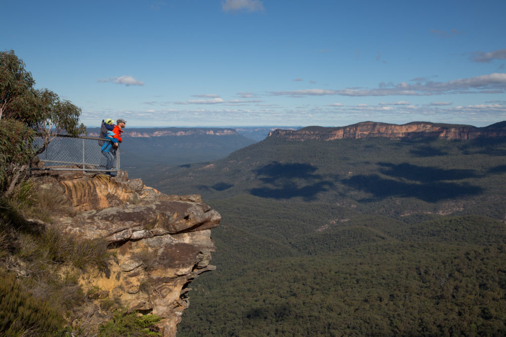 Jetzt brauchen wir noch etwas Bewegung, ein kurzer Bushwalk bringt uns auf dem Prince Henry Clifftop Walk zu den Three Sisters. Die drei Felsnadeln sind das beliebteste Ausflugsziel in den Blue Mountains, dem entsprechend ist auch das Gedränge am Aussichtspunkt. Die erste der Schwestern kann man über eine Brücke erreichen. Dazu muss man aber zunächst über 100 steile Stufen hinab und dann natürlich wieder hinauf steigen. Ich habe auch vier Tage später in Form von Muskelkater noch Freude daran.