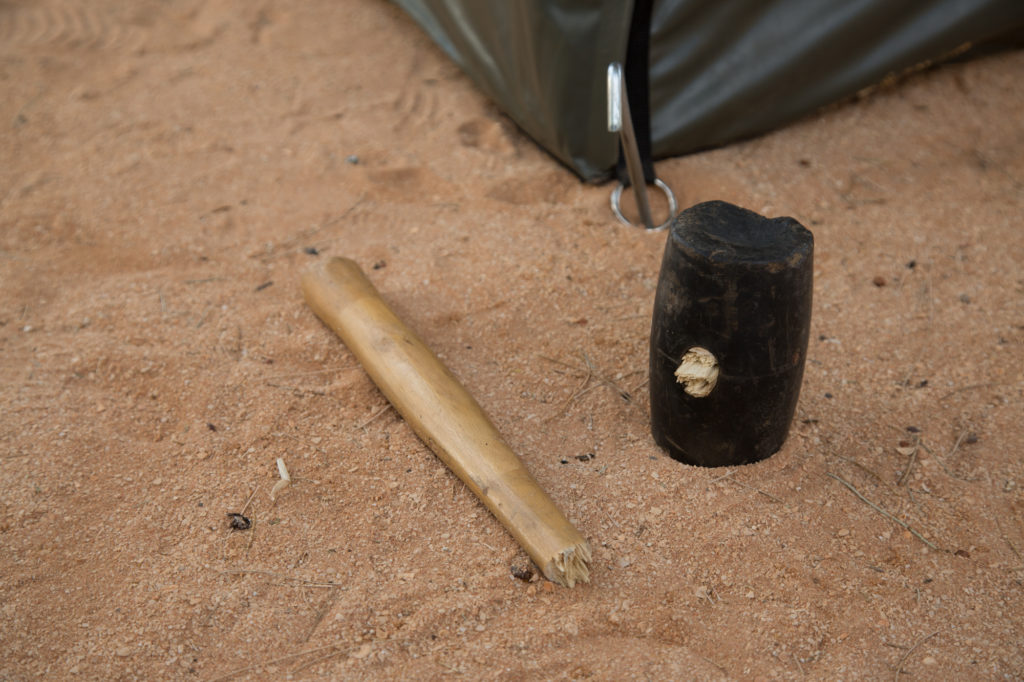Wir beschliessen, die Nacht in Denham zu verbringen. Die Wolken werden immer dunkler und es fallen doch Tatsache ein paar Tropfen vom Himmel. Die Jungs richten ihre Wanderbaustelle ein und Werner kämpft mit dem harten Gestein.