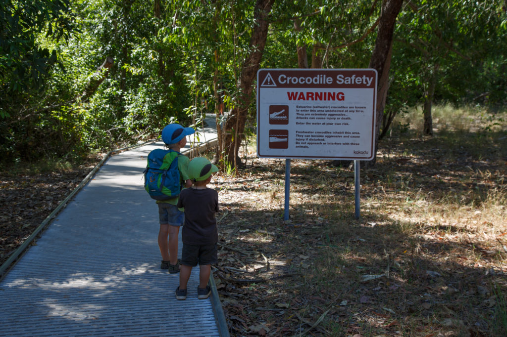 Der wohl bekannteste Nationalpark des Top End ist der Kakadu Nationalpark. Mit fast 20.000 Quadratkilometern ist es auch der grösste Nationalpark Australiens. Das lässt man sich gut bezahlen – 100 Dollar Eintritt. Das ist mehr als für alle Parks in Westaustralien zusammen. Wir haben 3 Tage Zeit für das riesige Gebiet und das ist unserer Meinung nach das absolute Minimum. Es gibt sieben sehr verschiedene Regionen zu erkunden, wobei bei unserem Besuch die Jim Jim und Twin Falls auf Grund eines Zyklons spät in der Regenzeit noch gesperrt waren.