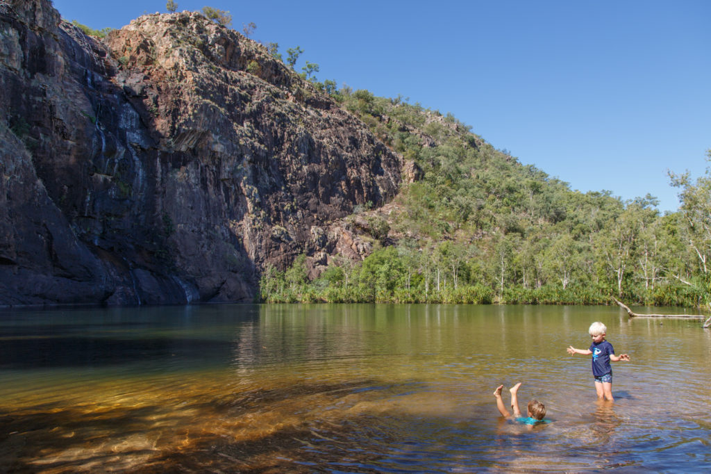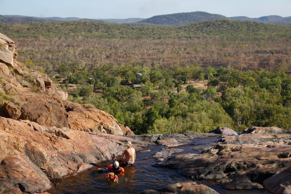 Die erste Nacht verbringen wir an den Gunlom Falls. Nach jeder Regenzeit werden alle Wasserlöcher von den Rangern über Wochen beobachtet, um sicher zu gehen, dass sich keine Salzwasserkrokodile ein neues zu Hause gesucht haben. Aber schwimmen erfolgt auf eigene Gefahr.