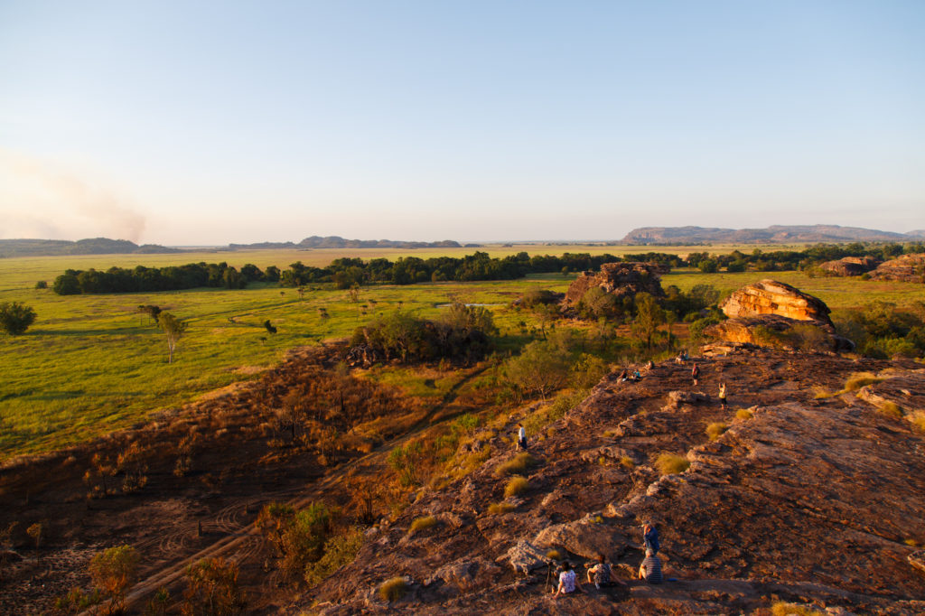 Die letzte Nacht im Kakadu verbringen wir in Jabiru, dem administrativen Zentrum der Region. Es gäbe zwar auch Bush Campgrounds, aber wir zahlen gerade einmal 2 Dollar mehr und haben Duschen und einen Pool. Dafür müssen allerdings eine halbe Stunde Anfahrt nach Ubirr in Kauf nehmen. Auch hier gibt es wieder ausgezeichnete Felsmalereien, aber die meisten Menschen kommen hier her, um den Sonnenuntergang oberhalb der Nadab Floodplain zu geniessen.