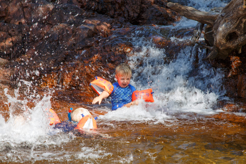 Der letzte Stopp des Tages sind die Buley Rockholes, eine Serie von Felsenpools mit Wasserfällen und Steinrutschen. Ein grosser Spass für die Kinder.