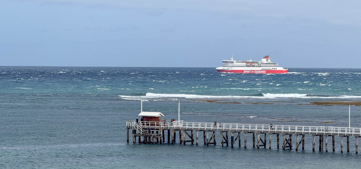 Für den Abend ist die Fähre nach Tasmanien ab Geelong gebucht. Wir machen noch einen Abstecher zum Rip Lookout auf der Bellarine Peninsula, wo wir die Spirit of Tasmania bei der Einfahrt in die Port Phillip Bay beobachten.