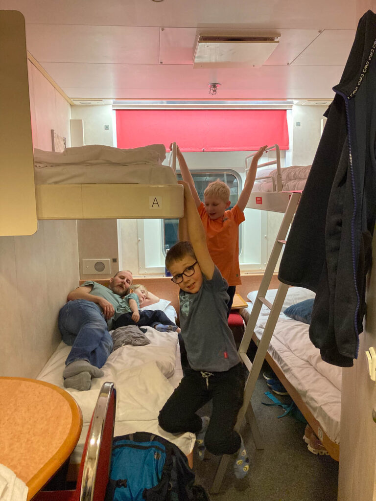 Wir haben eine Vierbett Kabine gebucht und nach 30 Minuten sind alle Kinder eingeschlafen. Ich teile mir ein Bett mit Charlie und habe dementsprechend minimalen Platz zur Verfügung. Eine Stunde nach Abfahrt kommt die Durchsage, dass wir auf Grund eines medizinischen Notfalls noch einmal nach Geelong zurück müssen. So ist es dann kurz vor ein Uhr morgens als wir The Rip passieren und das Schiff (für meinen Geschmack) ganz schön zu schaukeln anfängt. Zum Glück lässt es nach einer Stunde etwas nach, aber an Schlaf ist für mich trotzdem nicht zu denken.