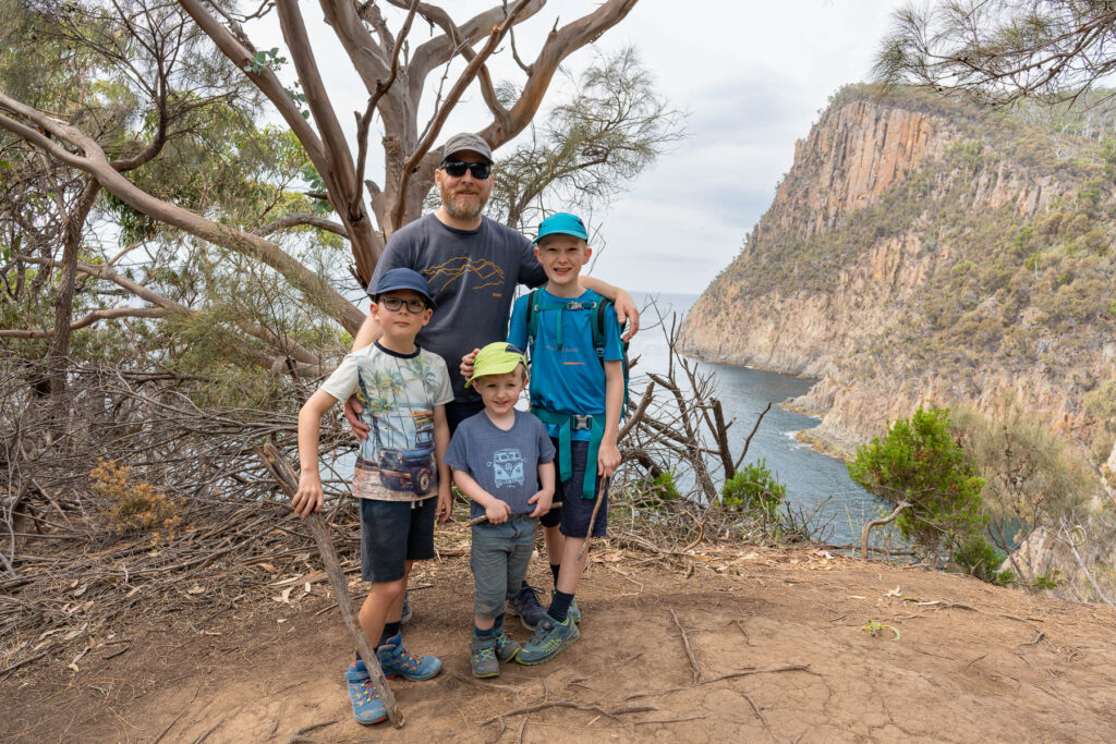 In Adventure Bay gibt es einen Wanderweg zum Fluted Cape. 5.4 km klingt machbar, die erste Hälfte soll sogar sehr einfach sein. Danach steigt der Weg Richtung Klippen an. Wir beschliessen zu schauen, wie weit wir kommen. Nach einem kurzen Stück über den Strand geht es über den Grass Point Track zu eben diesem. Selbst Charlie ist nach 2 Kilometern noch bester Laune und so fällt die Entscheidung, die ganze Runde zu laufen.