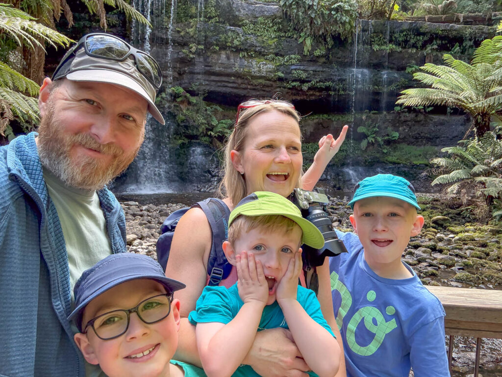 Henry und Paul haben noch Energie und so laufe ich mit den beiden noch den 6 km langen Three Falls Circuit. Die beiden sind so zügig unterwegs, dass ich kaum hinterher komme. Der Wanderweg ist richtig schön und weil es schon spät am Nachmittag ist, sind wir fast allein. Vorbei an den Horseshoe Falls über die Tall Trees gelangen wir schliesslich zu den Lady Baron Falls, die uns am Besten gefallen.