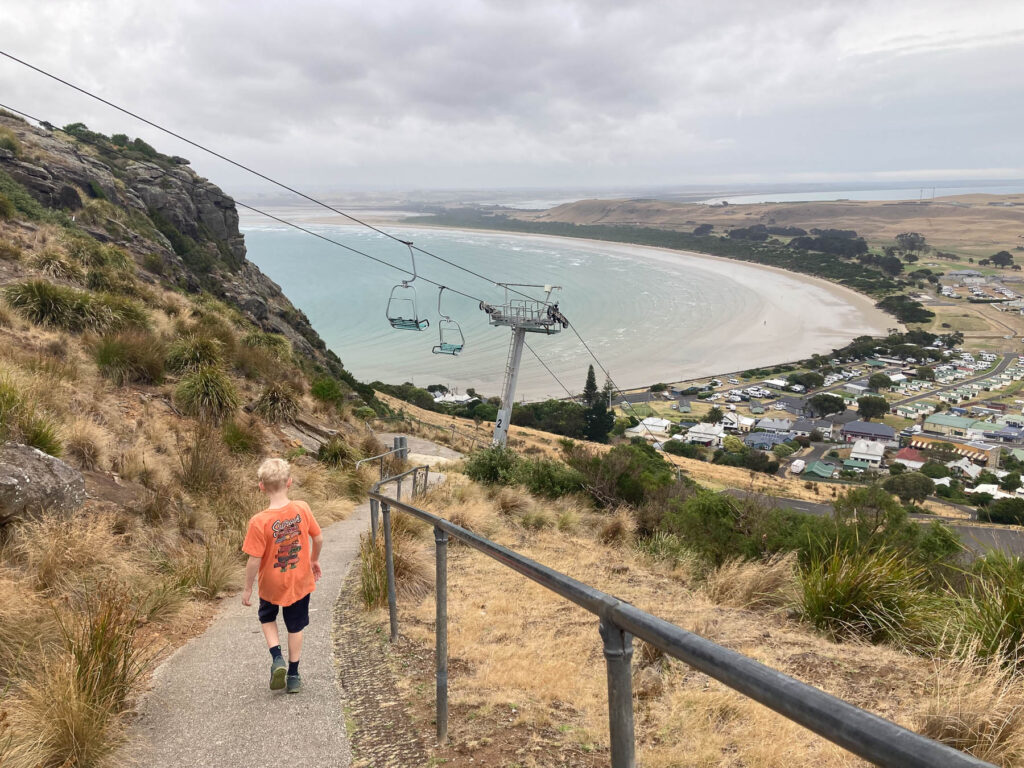 Oben wartet ein 2km langer Rundweg mit fantastischen Aussichten, aber leider fängt es an zu regnen. Für den Rückweg könnte man auch den Sessellift nehmen, der hat nur leider schon geschlossen.
