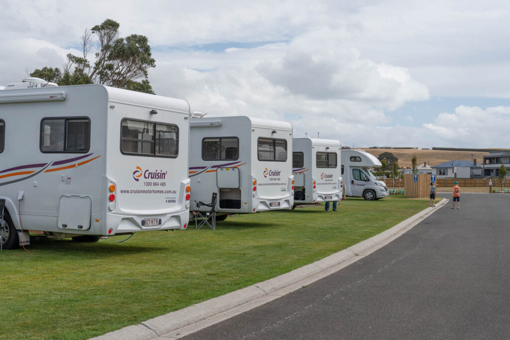 In Stanley richten wir uns auf dem Big4 Campingplatz ein, nicht ganz günstig aber super ausgestattet und fussläufig zur „Stadt“ und zum Strand.