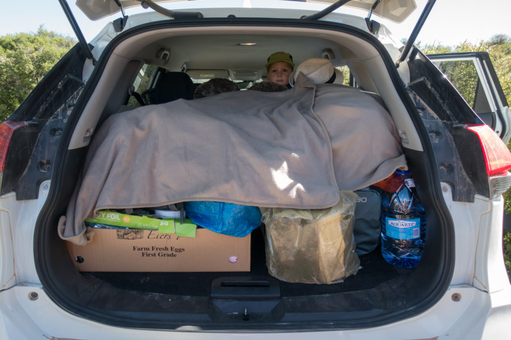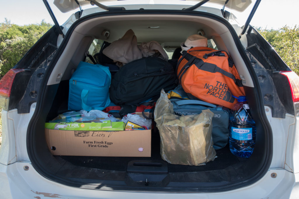 Bei der Abreise aus dem Addo sind wir in rekordverdächtiger Zeit startklar. Werner hat seine Tetrisfähigkeiten beim Beladen des Autos perfektioniert.