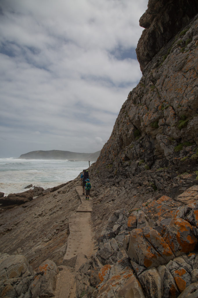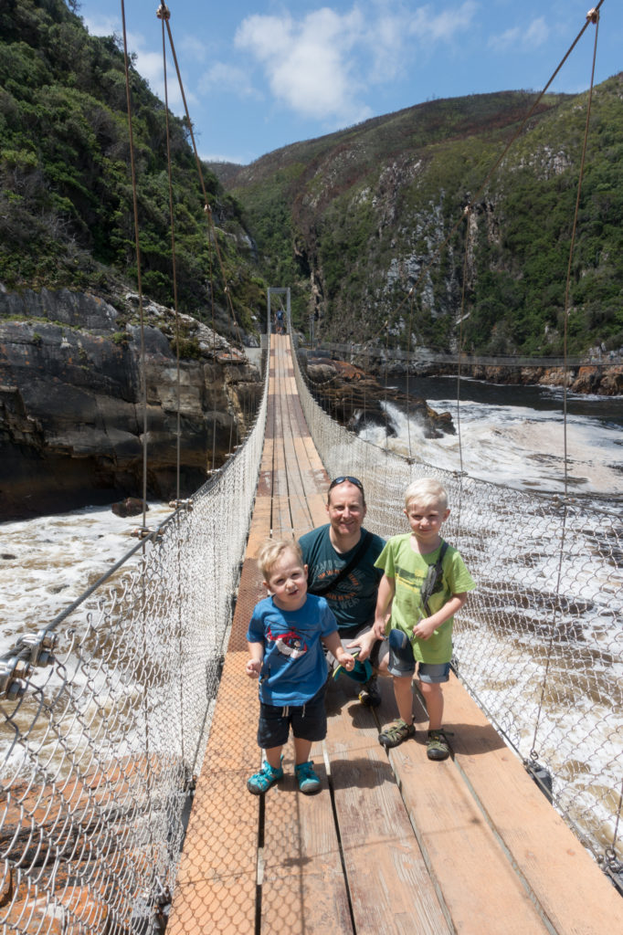 Auf der N2 kommen wir zügig voran und legen einen Stopp im Storms River Mouth ein. Das Gebiet ist Teil des Garden Route Nationalparks und man kann hier auch in Hütten direkt am Meer übernachten. Wir hatten hier allerdings vor ein paar Jahren kein Glück mit unserer Unterkunft und haben uns diesmal gegen einen längeren Aufenthalt entschieden. Die kleine Wanderung zu den Hängebrücken ist aber eine willkommene Abwechslung auf der langen Autofahrt.