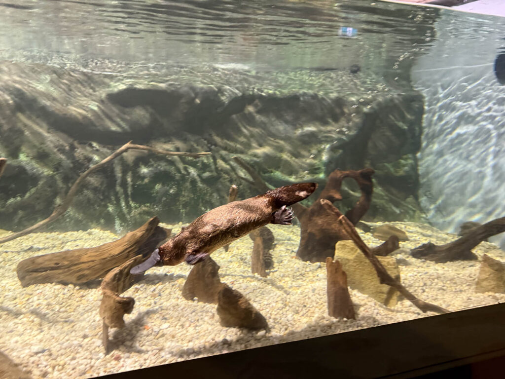 Und dann bricht der letze Tag in Tasmanien an. Da unsere Fähre erst um 22 Uhr fährt, machen wir noch einen Ausflug zum Platypus House am Tamar River, eine Auffangstation für Platypus (Schnabeltiere) und Echidnas (Ameisenigel). Sieht man sie von aussen, würde man nie glauben, dass sie miteinander verwandt sind. Vom Skelett her ein Reptil, das Fortpflanzungssystem der Vögel und damit die einzigen Säugetiere, die ihre Nachkommen nicht lebend gebären sondern Eier legen.