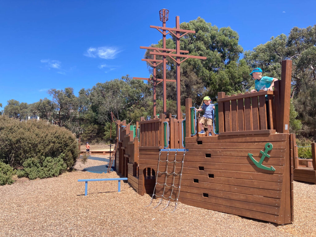 Torquay gilt als Surfer Paradies und dem entsprechend reiht sich ein Surf Shop an den nächsten. Einkaufen ist ja aber bekanntlich nicht die Lieblingsbeschäftigung von Kindern. Das tut Charlie nach Laden Nummer 3 dann auch lautstark kund und wir fahren zu einem Spielplatz in Anglesea. Wie fast immer in Australien mit öffentlichen Toiletten, überdachten Grillstellen und Wasserspender.