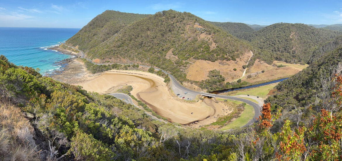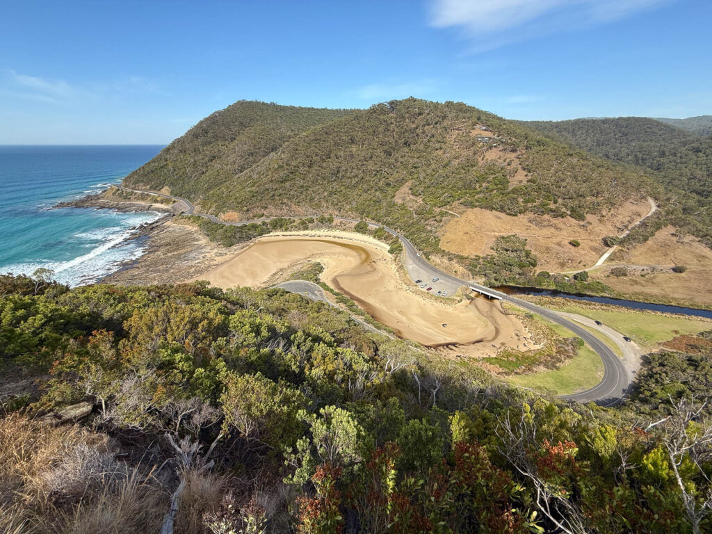 Vom Teddys Lookout hat man eine spektakuläre Aussicht auf die Great Ocean Road und die Mündung des St Georges River. Hier legen wir dann auch eine Bade- und Mittagspause ein.