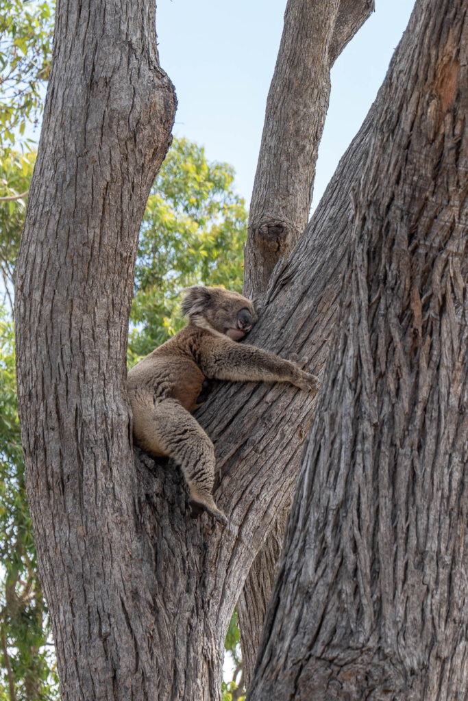 Wir bleiben zwei Nächte im Bimbi Park am Cape Otway. Der Campingplatz wirbt mit dem Slogan „Schlafen unter Koalas“. Und tatsächlich entdecken wir schon kurz nach der Ankunft das erste Exemplar. Am Abend erfahren wir von einer Frau, dass Koalas in dieser Region ursprünglich nicht heimisch waren und angesiedelt wurden. Da die lieben Tierchen äusserst ungern ihre Futterquelle wechseln, fressen sie die Eukalyptusbäume fast komplett leer, wovon diese sich meist nicht erholen. Deshalb wurde damit begonnen, die Koala Population einzudämmen.