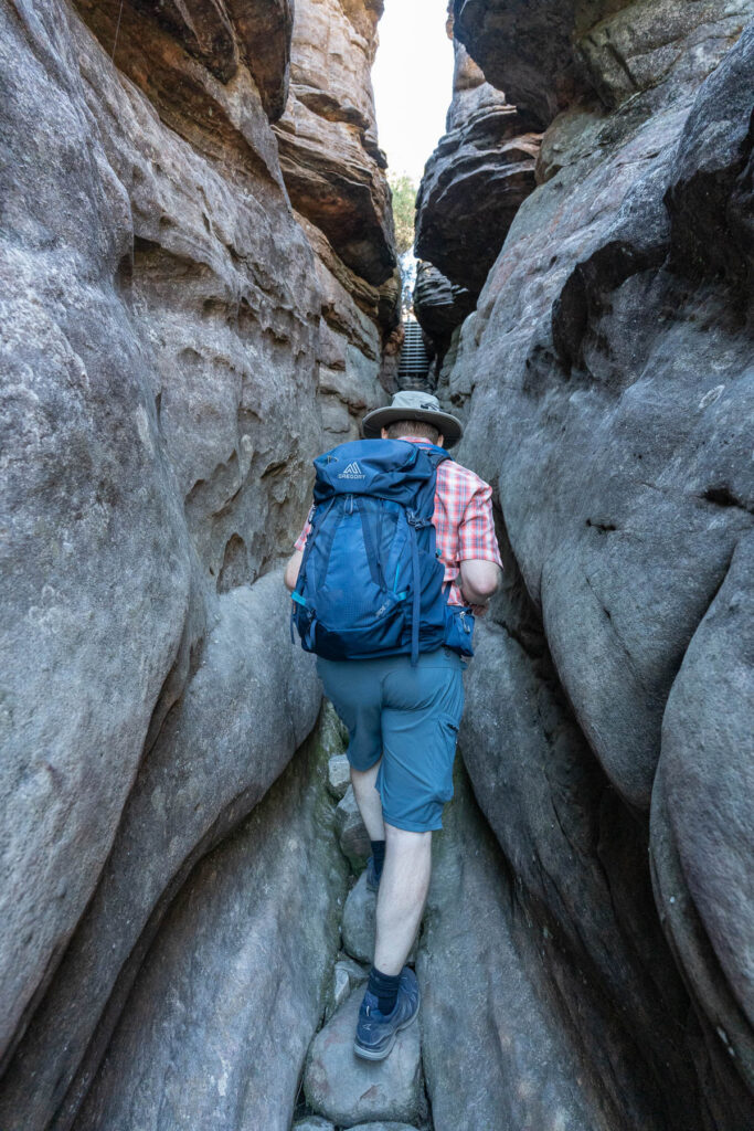 Es sind die Stufen im mittleren Teil, die zur Geduldsprobe werden, da es mittlerweile auch schon ordentlich warm ist und Schatten leider Mangelware. Nach einer gefühlten Ewigkeit erreichen wir die Silent Street (mit uns dann eher nicht silent), eine enge Felsspalte an deren Ende eine Treppe auf das Plateau führt, wo der Aussichtspunkt liegt.