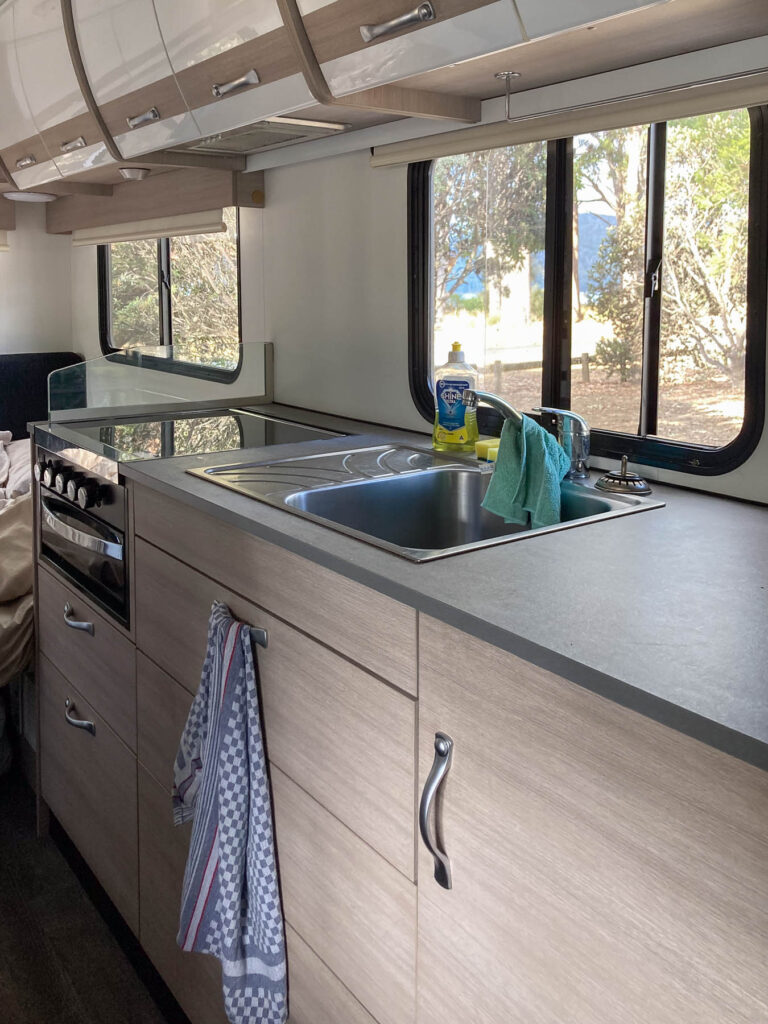 Gemietet haben wir einen Cruisin 6 Berth Deluxe über das deutsche Reisebüro CamperOase, welches uns sehr gut beraten hat. Das Wohnmobil dürfte maximal zweieinhalb Jahre alt sein und ja die hat der Gute im April dann auch genau erreicht. Die 77000 km, die in Melbourne schon auf dem Tacho standen, merkt man dem Fahrzeug vor allem im Inneren an. So sind Duct Tape und Taschenmesser fast täglich im Einsatz. Leider war das Wohnmobil bei der Übernahme auch ziemlich verdreckt, was wir aber erst in Geelong gemerkt haben.