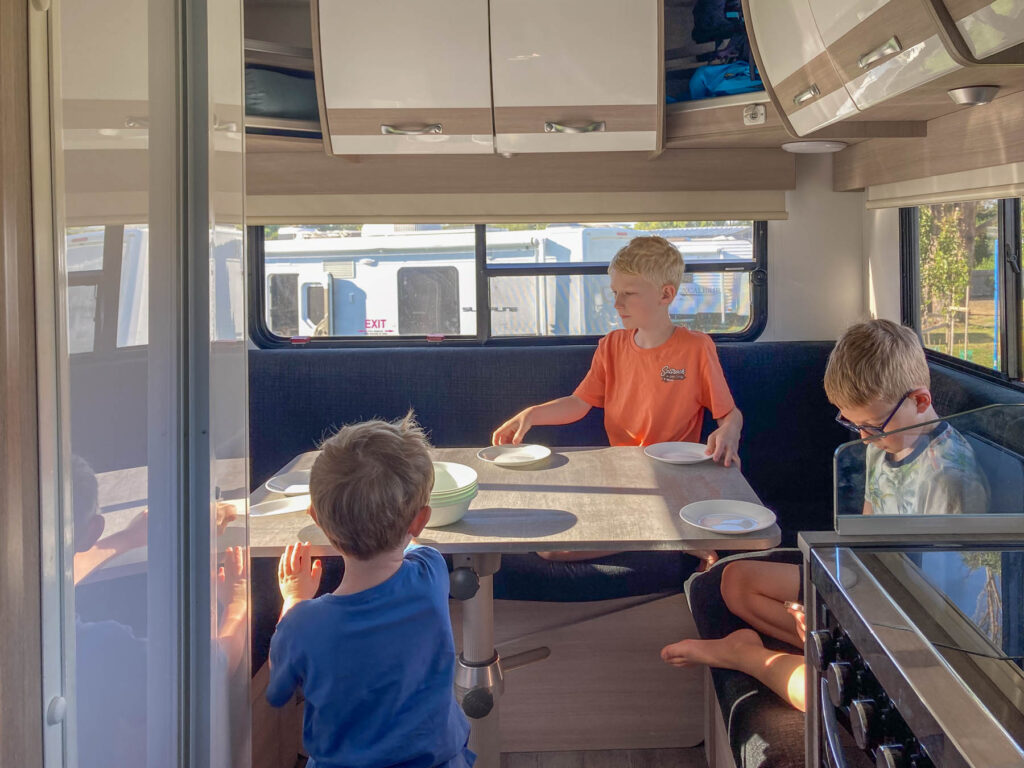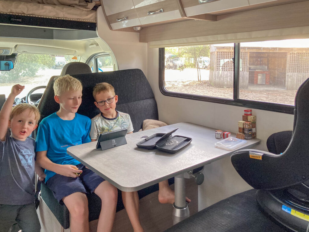 Da wir jetzt fast die Hälfte unserer Reisezeit hinter uns haben, wollen wir euch kurz unseren Reisegefährten vorstellen. Die Auswahl an Campern mit 5 Sitzplätzen ist sehr überschaubar und wir haben Glück, dass Henry und Paul zumindest nach dem Gesetz keinen Kindersitz mehr brauchen. Denn ein Wohnmobil, in dem man drei Kindersitze anbringen darf, gibt es in Australien nicht mehr zu mieten. Technisch wäre es möglich, aber es ist nicht erlaubt (warum kann einem keiner erklären).
