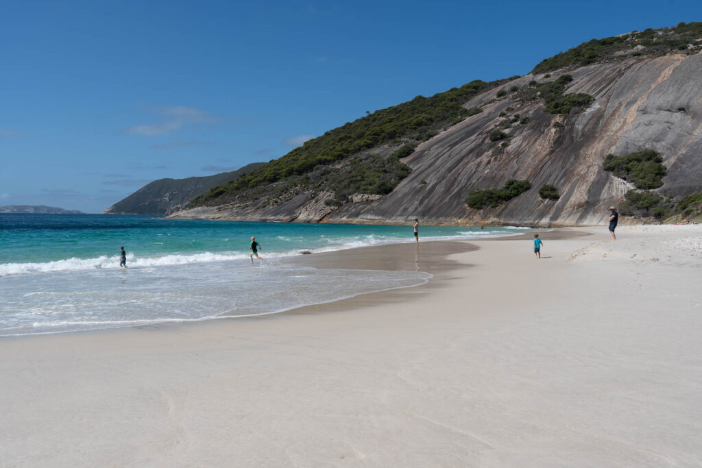 Daneben bietet der Park aber noch weitere unzählige Aussichtspunkte, Wanderwege und Badebuchten. Da die Jungs beim Wort „Viewpoint“ nur noch mit den Augen rollen, fahren wir zum Misery Beach, der alles andere als elend ist. Eigentlich als idealer Familienstrand beschrieben, gibt es hier sehr zur Freude von Henry und Paul richtig gewaltige Wellen, die selbst die stärksten Erwachsenen umhauen und zurück an den Strand spülen.
