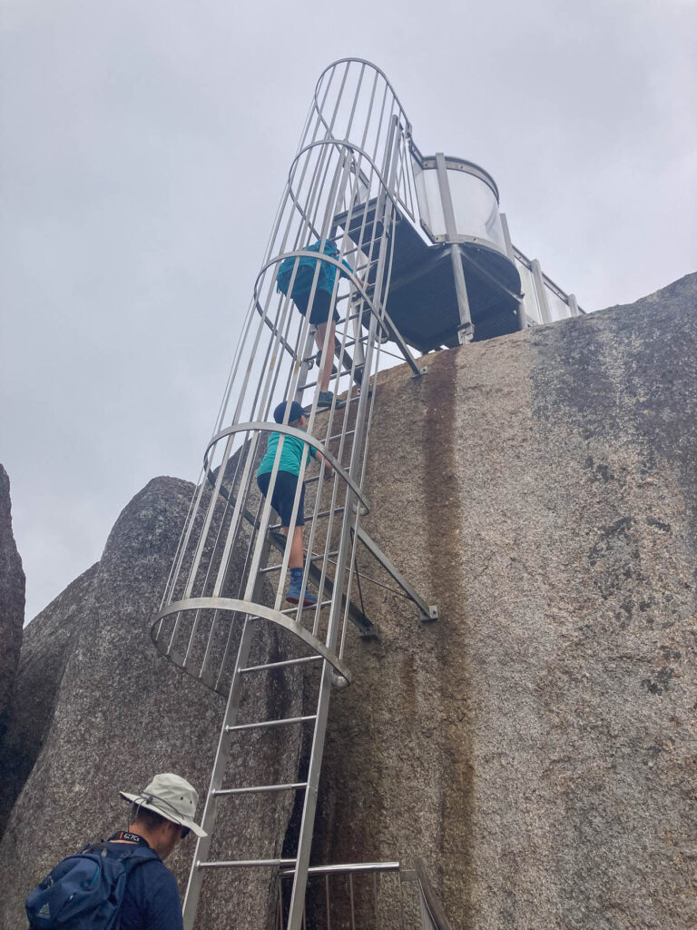 Dann stehen wir am Fusse der sieben Meter hohen Leiter, die uns hinauf zum Granite Skywalk bringt. Zunächst müssen wir warten, denn wir haben Gegenverkehr von oben. Ich möchte nicht wissen, wie es hier zur Hochsaison zugeht.