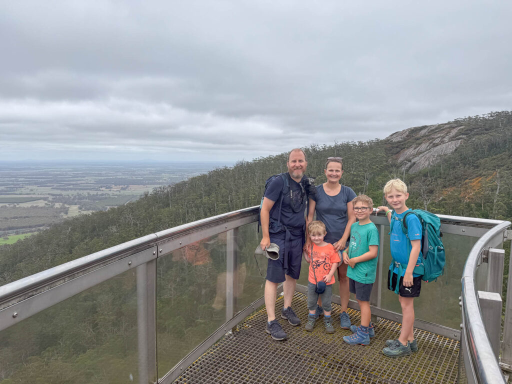 An unserem zweiten Tag in Albany fahren wir eine halbe Stunde ins Landesinnere zum Porongurup Nationalpark. Uns lockt der Castle Rock mit dem Granite Skywalk. Der Himmel ist wolkenverhangen, aber zum Wandern ist das gar nicht so schlecht. Die 2.3 Kilometer zum Castle Rock verlaufen zwar zum Grossteil im Wald, aber sobald die Sonne hinter den Wolken hervor blitzt, fühlt es sich gleich zehn Grad wärmer an.