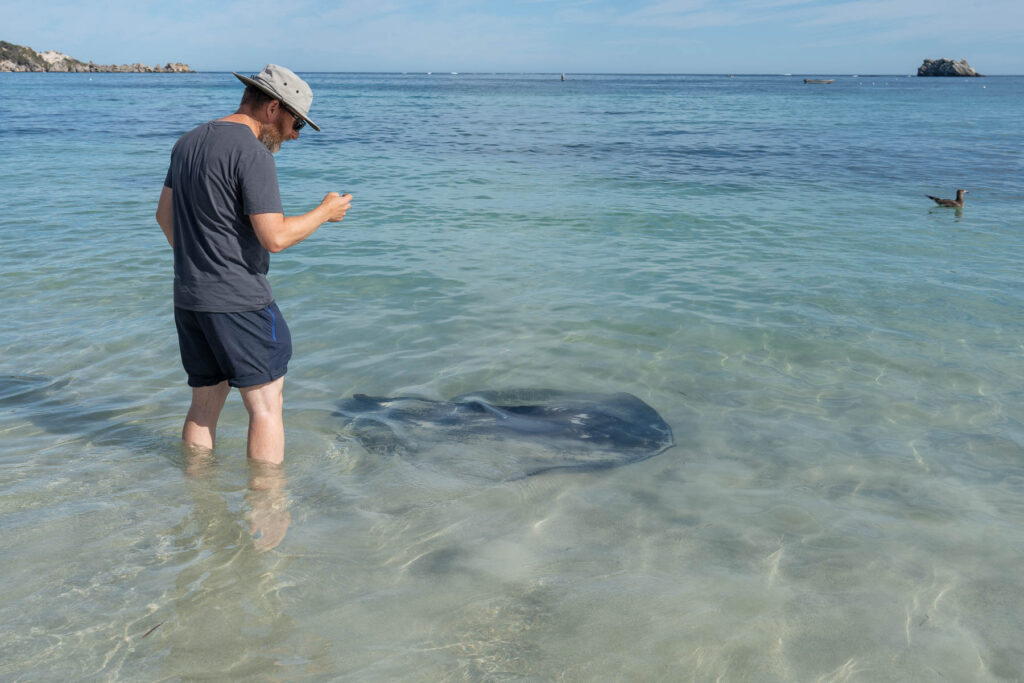Ein paar Tage bleiben uns noch für die Margaret River Region, wo wir zuerst nach Hamelin Bay fahren. Der Strand ist bekannt für die Rochen, die fast jeden Morgen vorbei schauen. Zunächst machen sie sich rar und wir wollen schon enttäuscht weiter ziehen. Dann haben wir aber doch noch Glück.