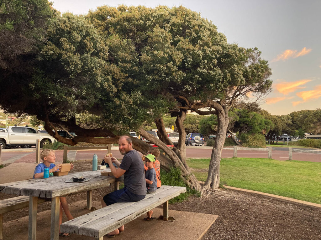 In Busselton legen wir einen Stopp ein. Hier gibt es mit 1,8 Kilometern den längsten Holzsteg der südlichen Hemisphäre. Jetzt haben wir gefühlt alle Superlative an Stegen in Australien gesehen. Auf einen Spaziergang verzichten wir, da man sogar dafür Eintritt zahlen muss. Ausserdem wimmelt es nur so von Leuten, da ein riesiges Kreuzfahrtschiff vor Anker liegt. Nach einem Besuch auf dem wirklich schönen Spielplatz und einem Bad im Meer, geht es zum letzten Campingplatz mit dem Wohnmobil in Bunbury.