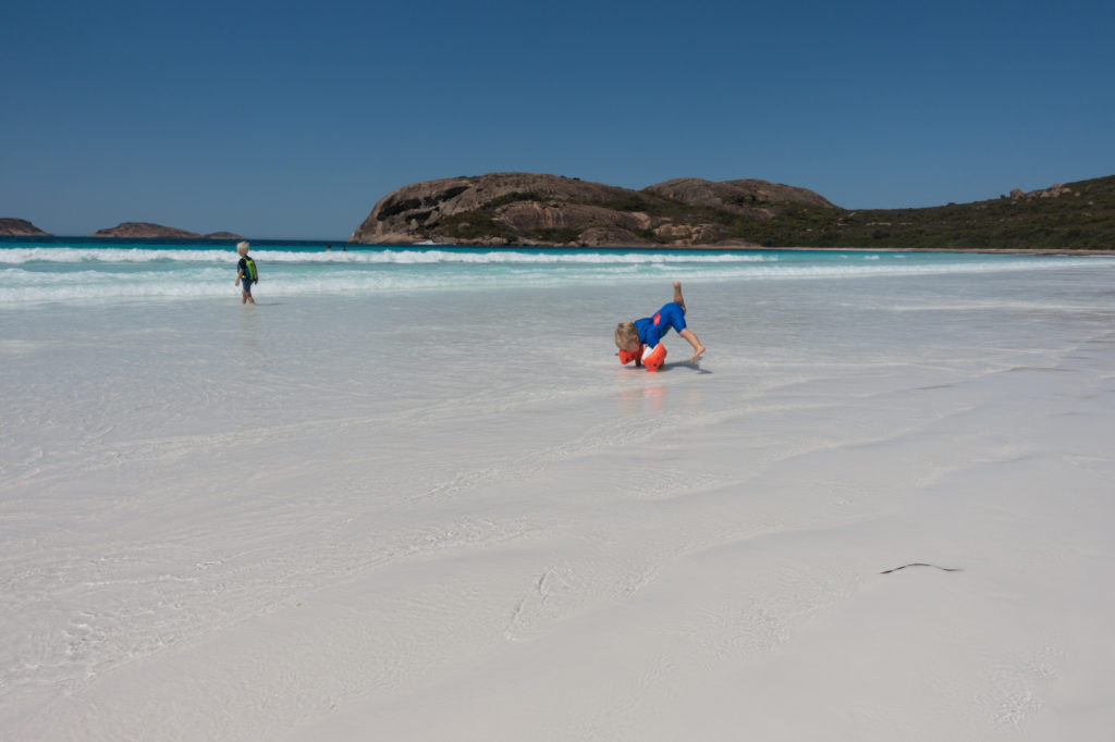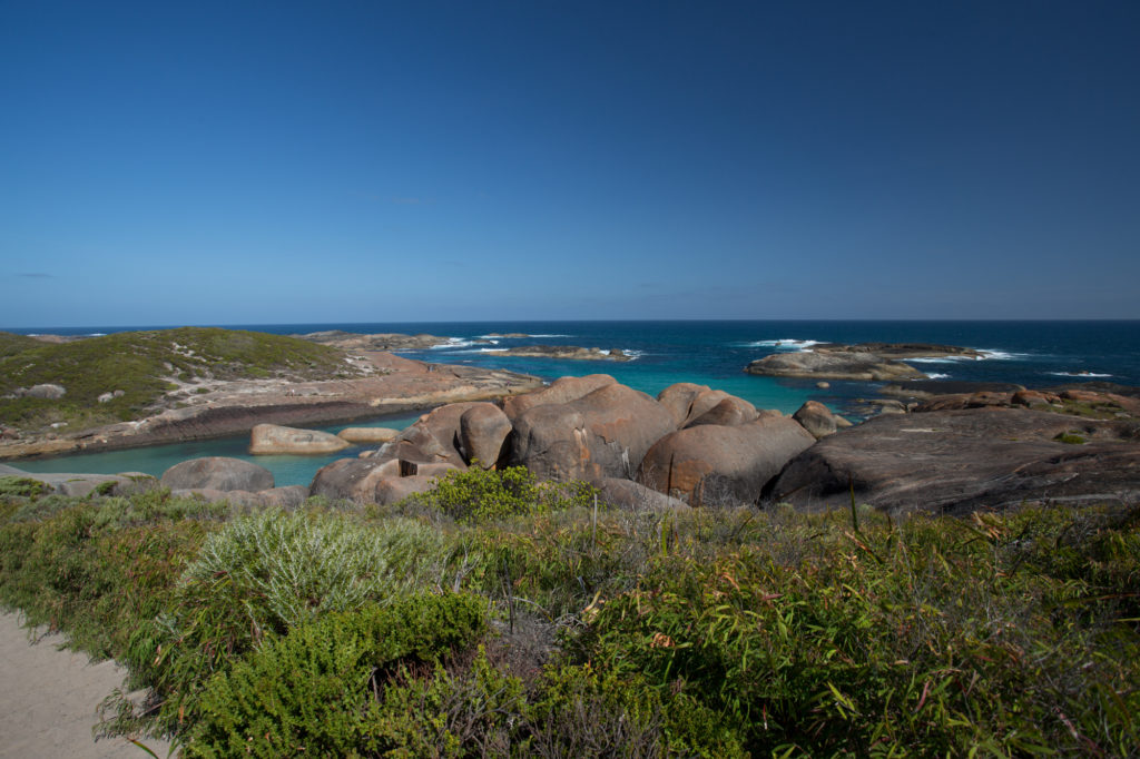 Unseren Ruhetag verbringen wir am Greens Pool im William Bay Nationalpark. Die Bucht ist durch Felsen vor grossen Wellen geschützt und daher vor allem bei Familien beliebt. Beim Anblick der Bucht fällt uns mal wieder die Kinnlade herunter, einfach wunderschön.