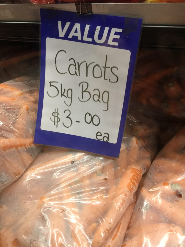 Denmark begrüsst uns direkt mit skandinavischem Wetter – Regen und Wind. Wir beschliessen, bis Albany weiter zu fahren und uns dort einen Campingplatz zu suchen. Unsere letzten Gastgeber haben uns noch einen Tipp für günstiges Obst und Gemüse mit gegeben. Und so stehen wir in einer riesigen Markthalle zwischen 20 kg Säcken mit Kartoffeln und Strohballen.
