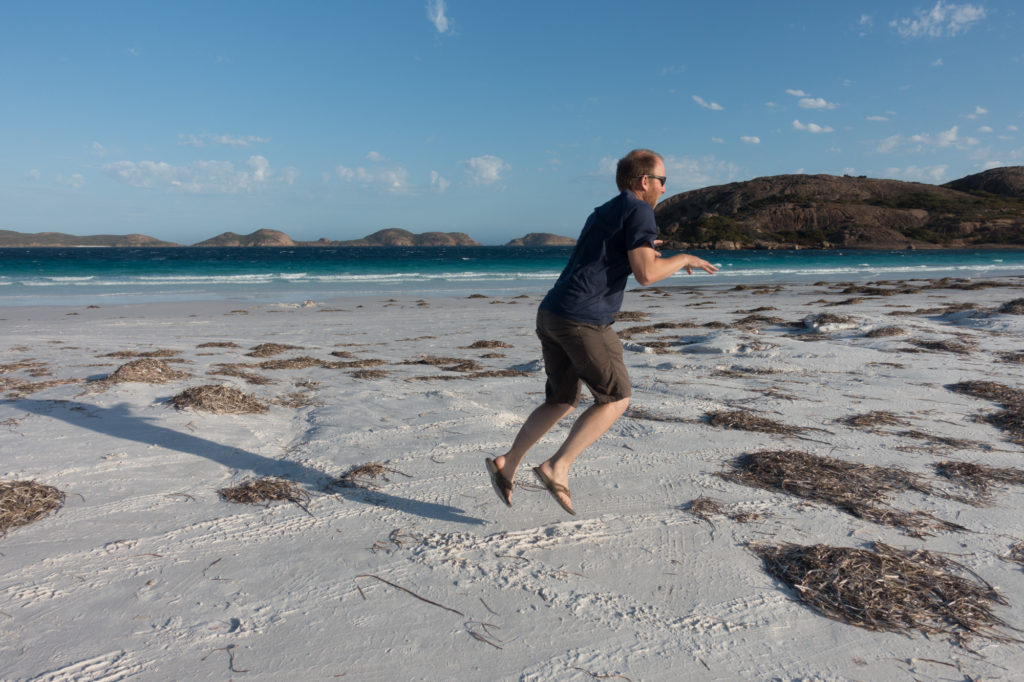 Esperance selbst hat nicht viel zu bieten und unser Campingplatz ist wohl der schlechteste auf der ganzen Tour. Die Strände rund um die Stadt sind allerdings Weltklasse und so fahren wir noch einmal zur Twilight Cove, wo wir doch tatsächlich unseren Freund aus Liverpool wieder treffen.