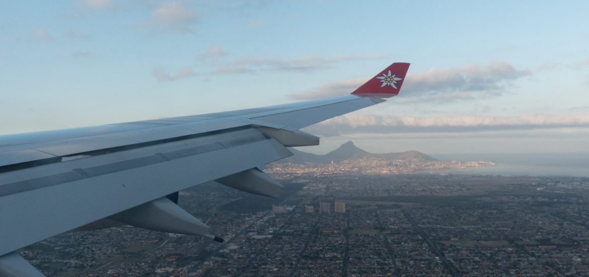 Um 6:20 Uhr landen wir überpünktlich in Kapstadt müssen aber noch über eine halbe Stunde im Flugzeug ausharren, weil die Brücke nicht an das Flugzeug angedockt werden kann.