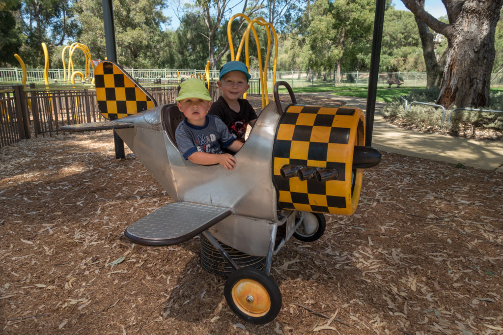 Und was macht man so in Perth mit Kindern? Auf den Spielplatz gehen, was sonst. Zuerst landen wir im Kings Park, der grünen Lunge der Stadt. Henry und Paul sind fast nicht mehr aus dem Flugzeug heraus zu bekommen.