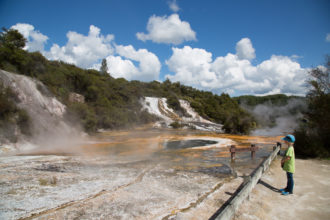 Taupo lassen wir links liegen und fahren weiter Richtung Norden. Einen kurzen Halt an den Huka Falls machen wir aber noch. Der Waikato, der normalerweise 100 Meter breit ist, wird hier durch eine ca. 15 Meter breite Stelle gepresst. Wir haben für heute Nacht schon einen Campingplatz in der Nähe von Rotorua reserviert und wollen […]